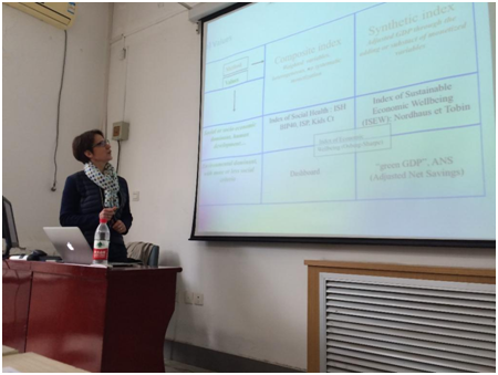 在总结第一次讲座的基础上,主要对经济增长不同测度方式的问题进行了深入的探讨和分析。此次讲座,Jany-Catrice教授围绕特殊感知背景、新的衡量财富指标出现的社会政治条件以及对于不同衡量指标的不同分类三个主要方面进行了分析。首先,在特殊感知背景的分析中,Jany-Catrice教授主要对合理性和关于“质量”的模糊概念界定问题进行讲授。其次,在衡量财富的指标出现的社会政治条件中,教授给出了以生活满意度的衡量指标、OECD给出的生活指数以及联合国环境项目给出的包容性财富指数(IWI)为代表的不同生活质量衡量指数,表明不同组织试图通过反驳其他的指数来建立自己的拥有合法性的指数。并且指出这些指数中没有包含生态界限,而只是不断扩充指数,以期其能解释和解决一切问题,但并未考虑指数的合理性。最后,在对指标分类的探讨中,从规模、价值和合法性三方面将指数分为组合指数和合成指数,并对组合指数和合成指数之间的区别进行了详细的解释。