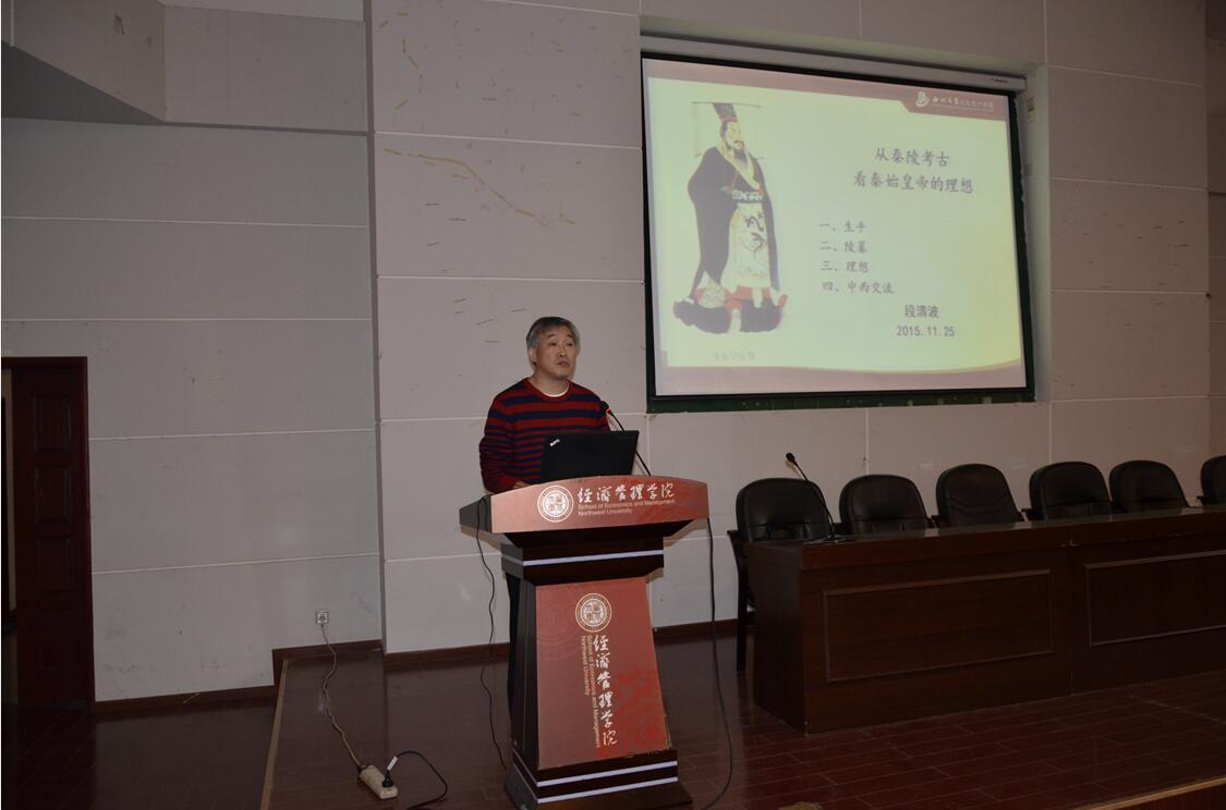 讲座开始前,段教授首先阐述了他对考古学科和经济学科共性方面的认识,他讲到考古学研究的最终目的不是为了出土多少文物、发现多少古迹,而是要通过研究这些文物对人类文明历史进行分析和解释,阐明人类社会的发展过程,他相信经济学研究的目的也不是为了构造经济数理模型,最终的落脚点一定是满足人的需求,推动人类社会文明发展。段教授的观点引起了在场学生深深的共鸣。讲座中,段教授通过讲解秦始皇的生平,历年来对秦陵考古的研究成果,以及最新的考古发现等几个方面,为大家还原了一个真实的、有血有肉的、与史书记载并不相同的秦始皇形象,段教授讲到秦始皇制定的多项治国政策为后世历朝历代治国体系的形成产生了巨大而深远的影响,他让在场的同学们认识到,秦始皇并不是人们简单认识中的一个暴君,他的治国理念和理想是值得肯定的。讲座中,段教授还强调了另外一个重要的观点,就是大一统思想是融入到中华民族血脉之中的。秦国统一六国是历史发展的必然,是战国200多年历史期间,各国人心所向的必然结果。无论后世如何变革,大一统思想作为中华传统文化的一部分,是所有改革的根基。最后,段教授还分享了他对中西古代文明渊源一些研究和认识。整场讲座,段教授用他渊博的知识结合多年考古实践,用通俗易懂又引入入胜的语言,为在场经济学科的学生们勾勒出了一幅宏大的秦帝国形象,还原了一个鲜活生动的秦始皇,极大的开拓了大家的眼界,让大家感受到了历史独特的魅力,感受到了中华民族的伟大和中华文化的博大精深。讲座在同学们热烈的掌声中落下帷幕。