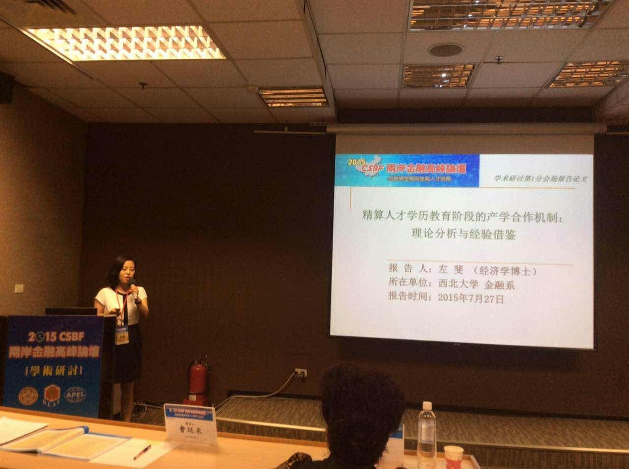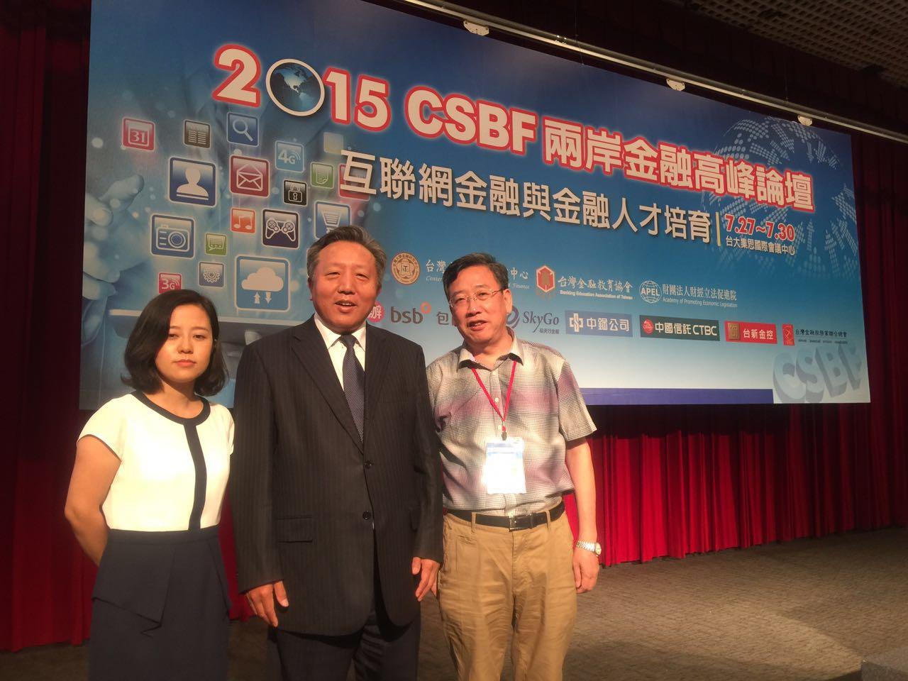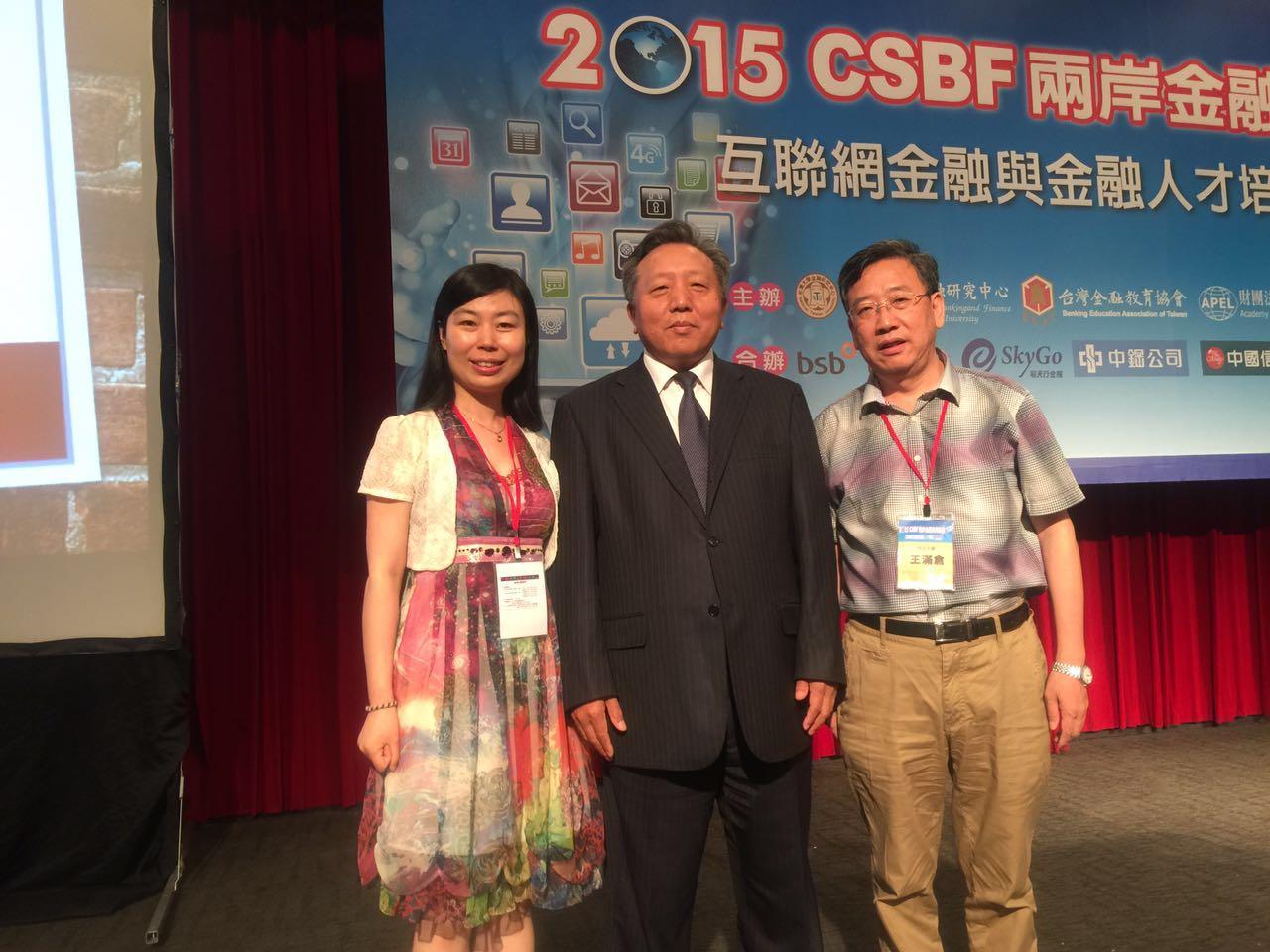 2015年7月27日至7月30日,由台湾大学金融研究中心、财经立法促进院及台湾金融教育协会共同主办,台湾金融理事会协办的2015 CSBF两岸金融高峰论坛于台北召开。我院金融系王满仓教授、韩锦绵副教授和左斐博士三位教师提交的论文经过评审筛选获邀赴台参加,并发表学术演讲,王满仓教授还被邀请作为学术论文分会场主持人出席大会。