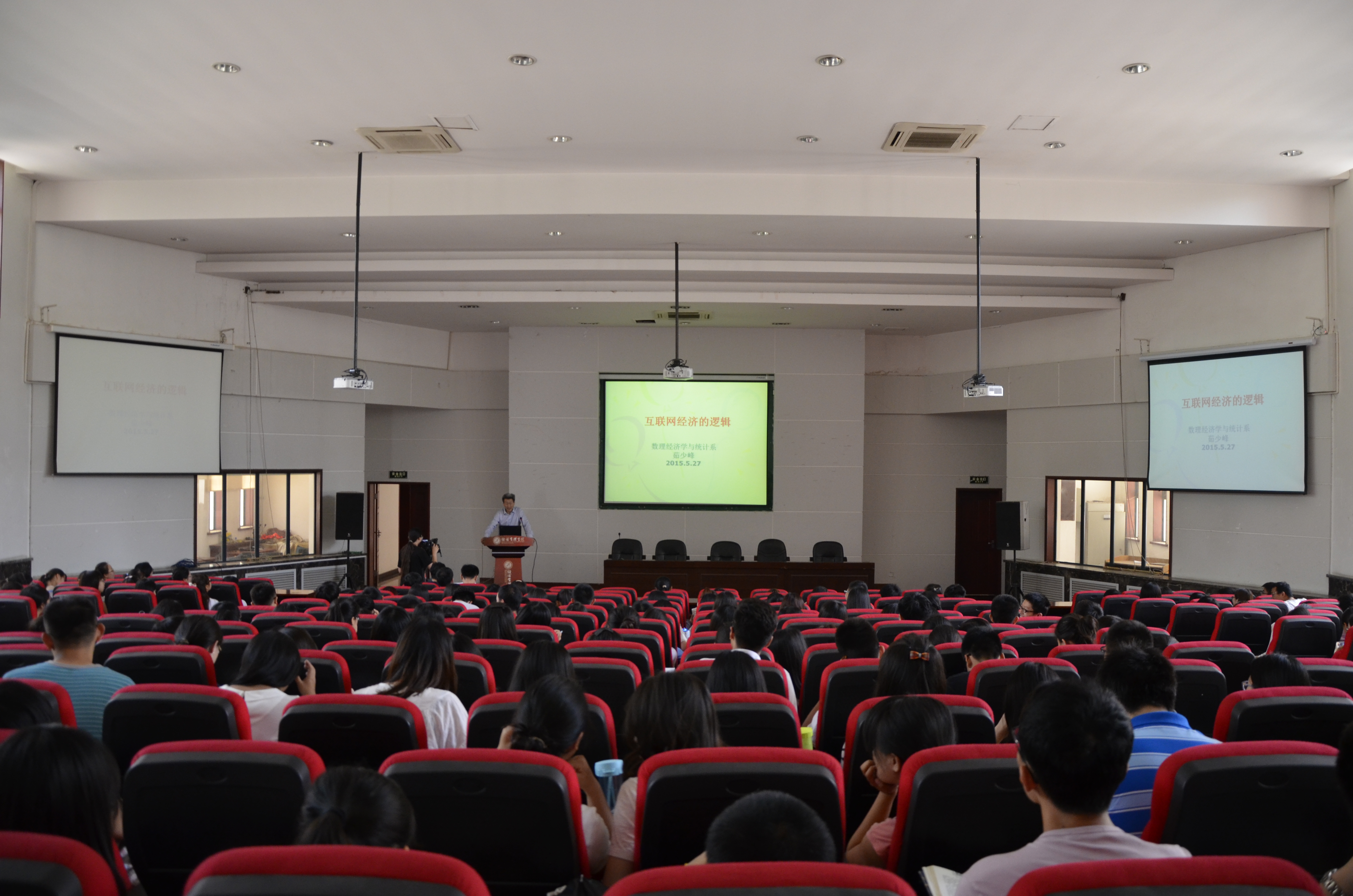5月27日下午,由研究生院、研究生工作部主办,776net必赢官网承办的“导师讲坛”第三十二讲在长安校区金海恒业报告厅举行,776net必赢官网茹少峰教授应邀作了题为“网络经济的逻辑”的报告。全校近三百名师生聆听了报告。
