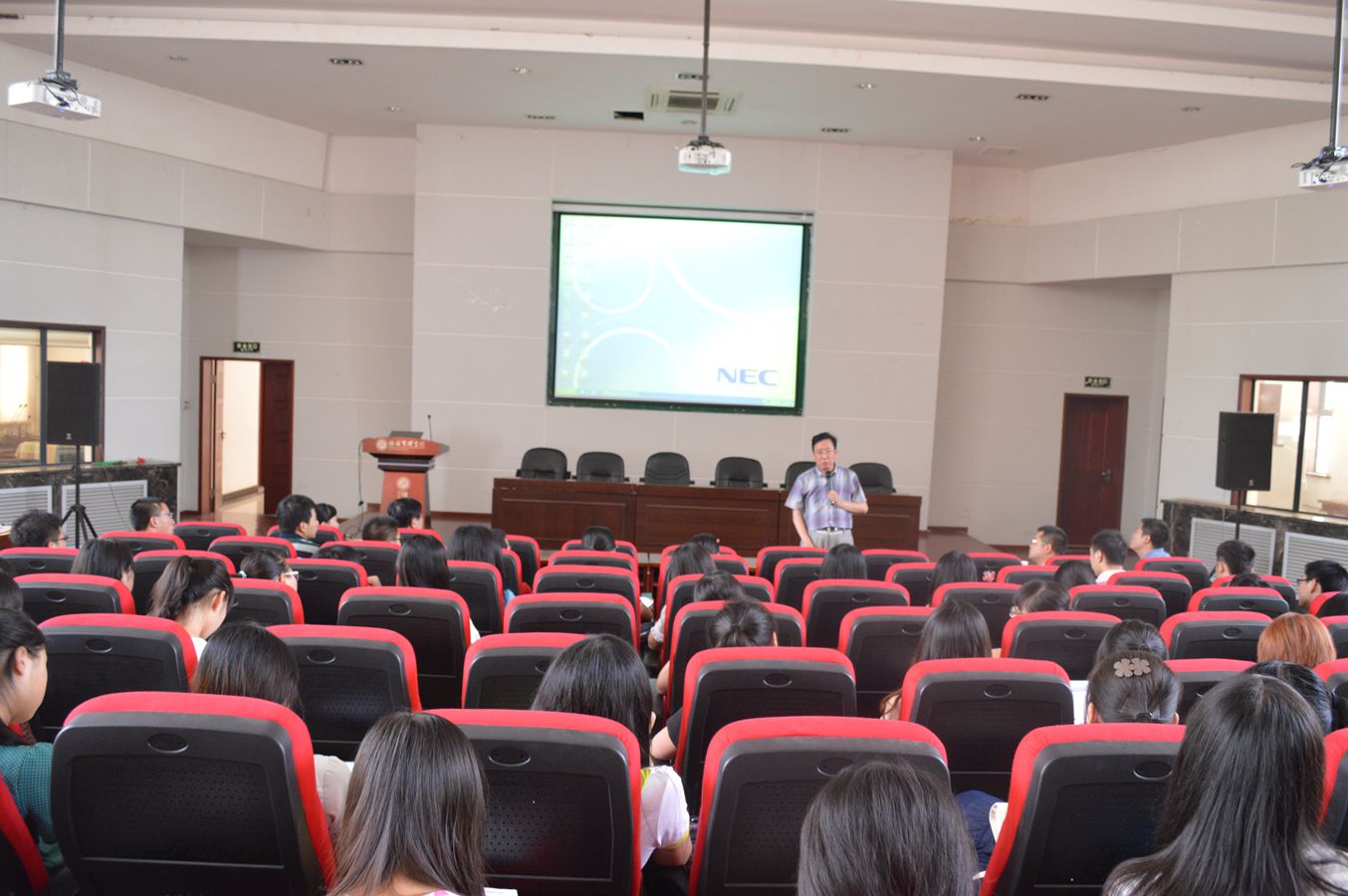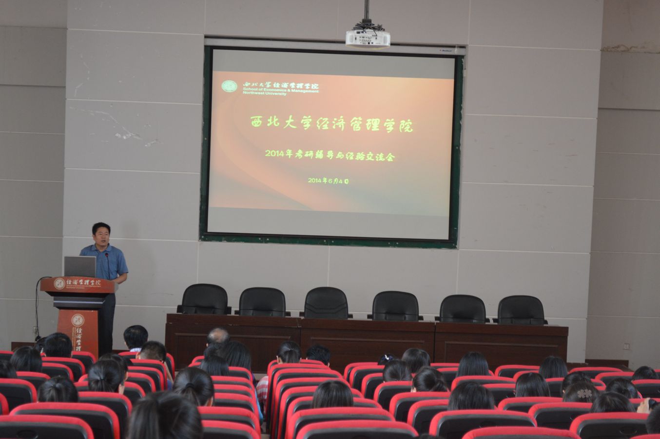 6月4日下午4点,我院考研辅导与经验交流会在金海恒业报告厅成功举行。工商管理系主任安立仁教授、金融系主任王满仓教授、经济系主任何爱平教授和数学学院张博副教授应邀出席会议并为同学们做了考研辅导。唐旭等四名考研成功的同学介绍了考研经验与备考心得。会议由院党委副书记李一凡老师主持,100多名计划考研的学生参加了交流会。
