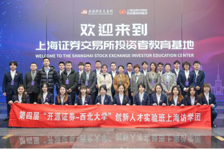 2023年12月4日-8日,第四届“开源证券-西北大学”创新人才实验班访学活动在上海圆满举办。776net必赢官网院长马莉莉、开源证券总经理助理张国松等带队出行,陕西证监局机构监管处相关负责人同行参加。22名学员在为期五天的访学中先后参访了上海证券交易所、上海财经大学、开源证券上海区域总部、东方财富总部、工商银行总行私人银行部和上海万得信息技术股份有限公司,走进中国金融市场前沿阵地,感受资本市场发展的脉搏。