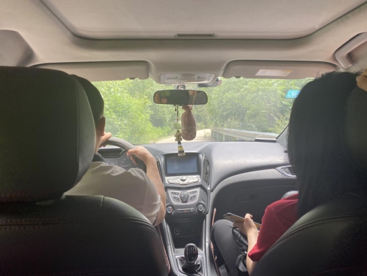 乘车参观中药材种植区