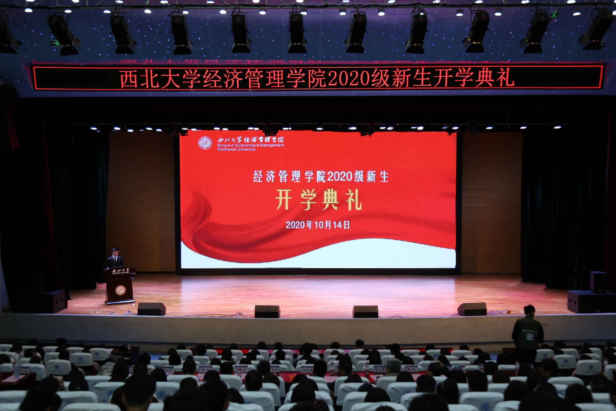 10月14日下午,776net必赢官网2020级新生开学典礼在长安校区大学生活动中心举行。776net必赢官网全体党政领导,杰出校友马超博士,各系中心主任,院长助理,教师代表出席典礼。638名本科生、研究生新生参加典礼,开学典礼由学院党委书记杜勇主持。